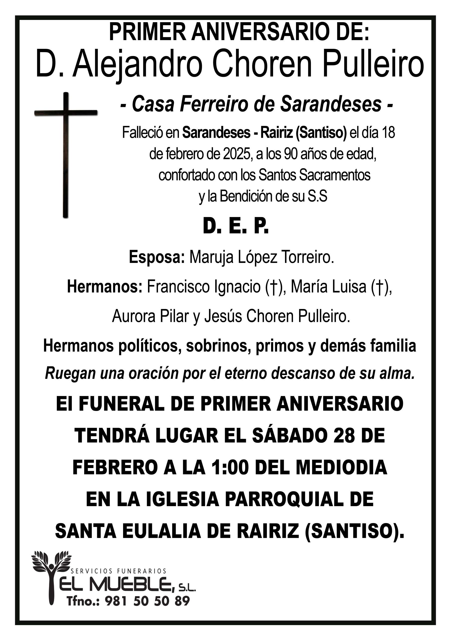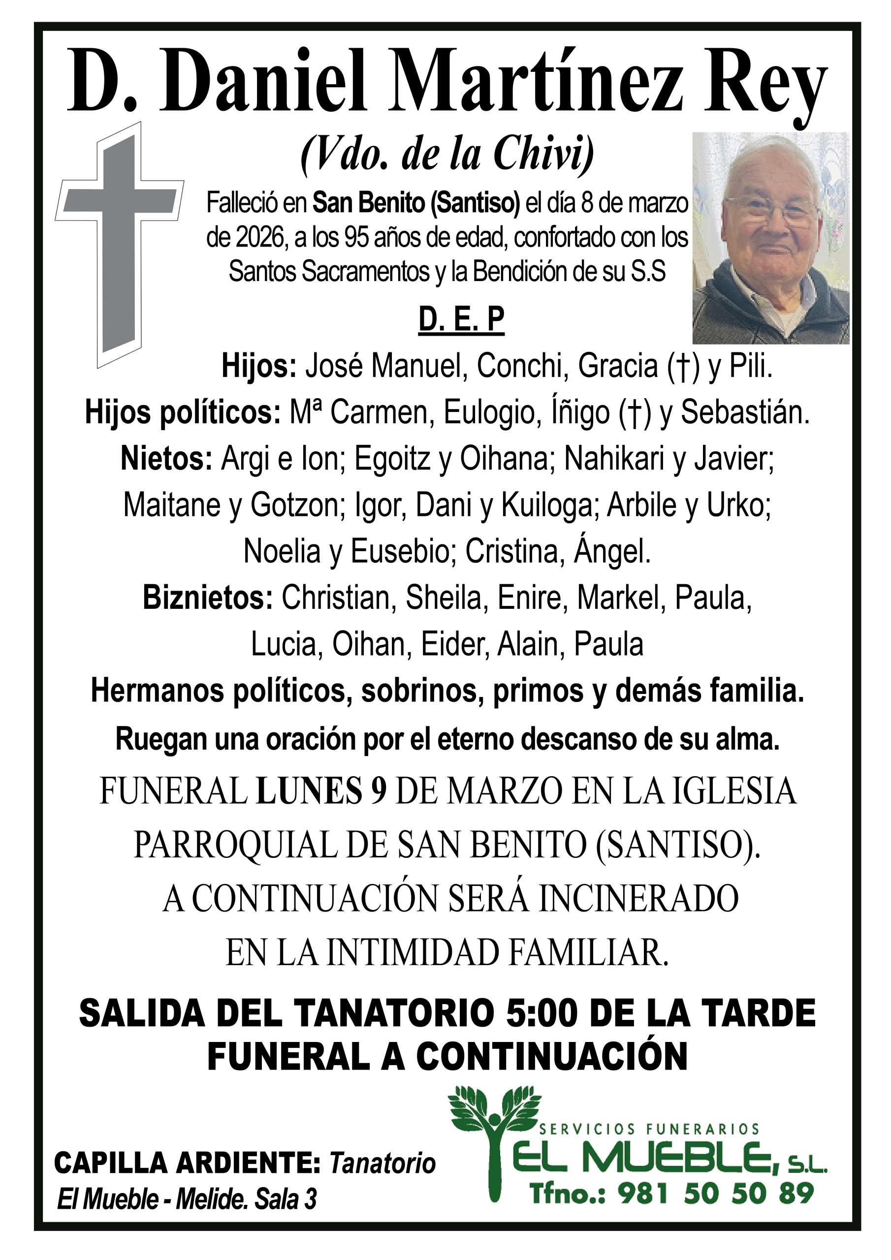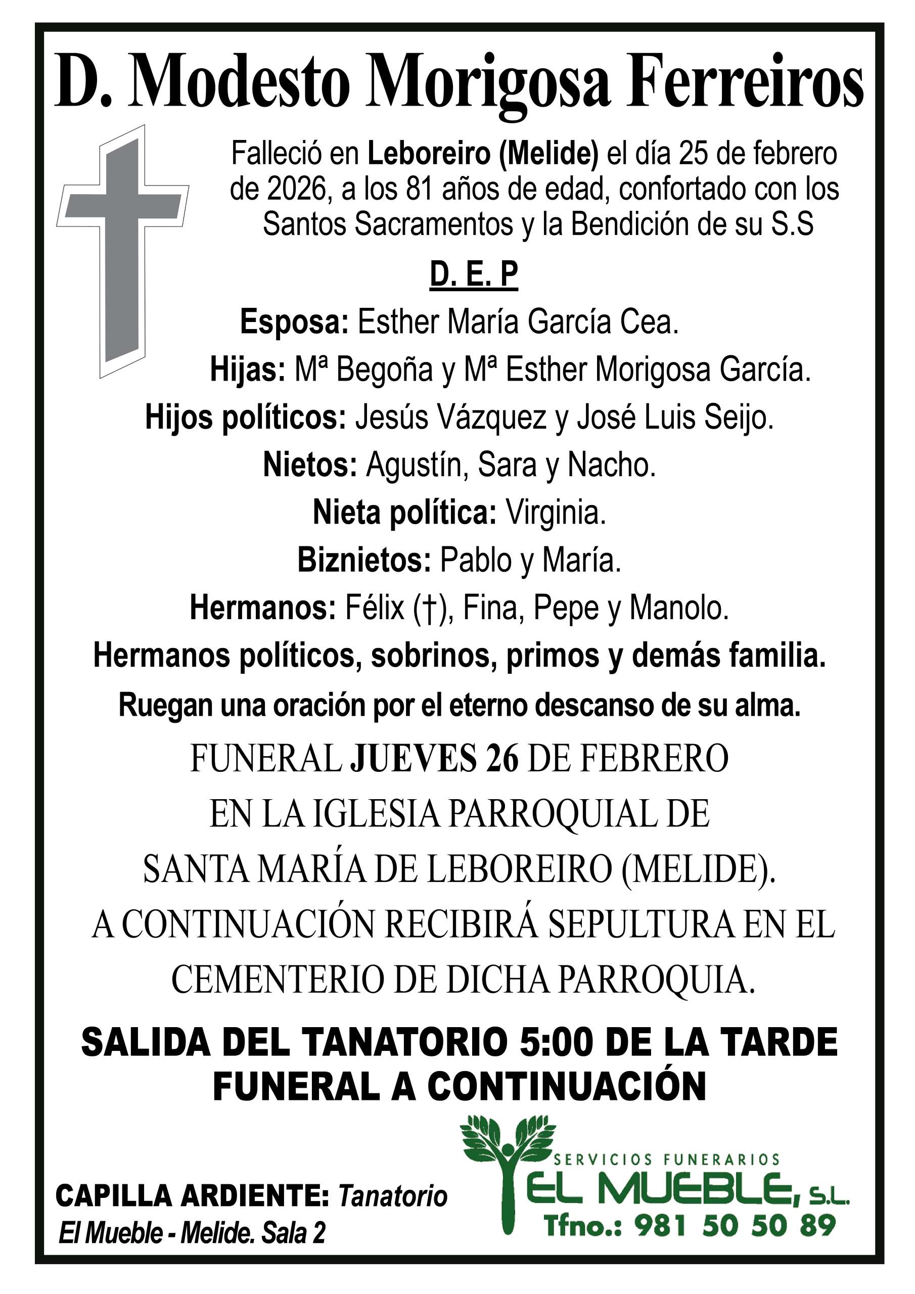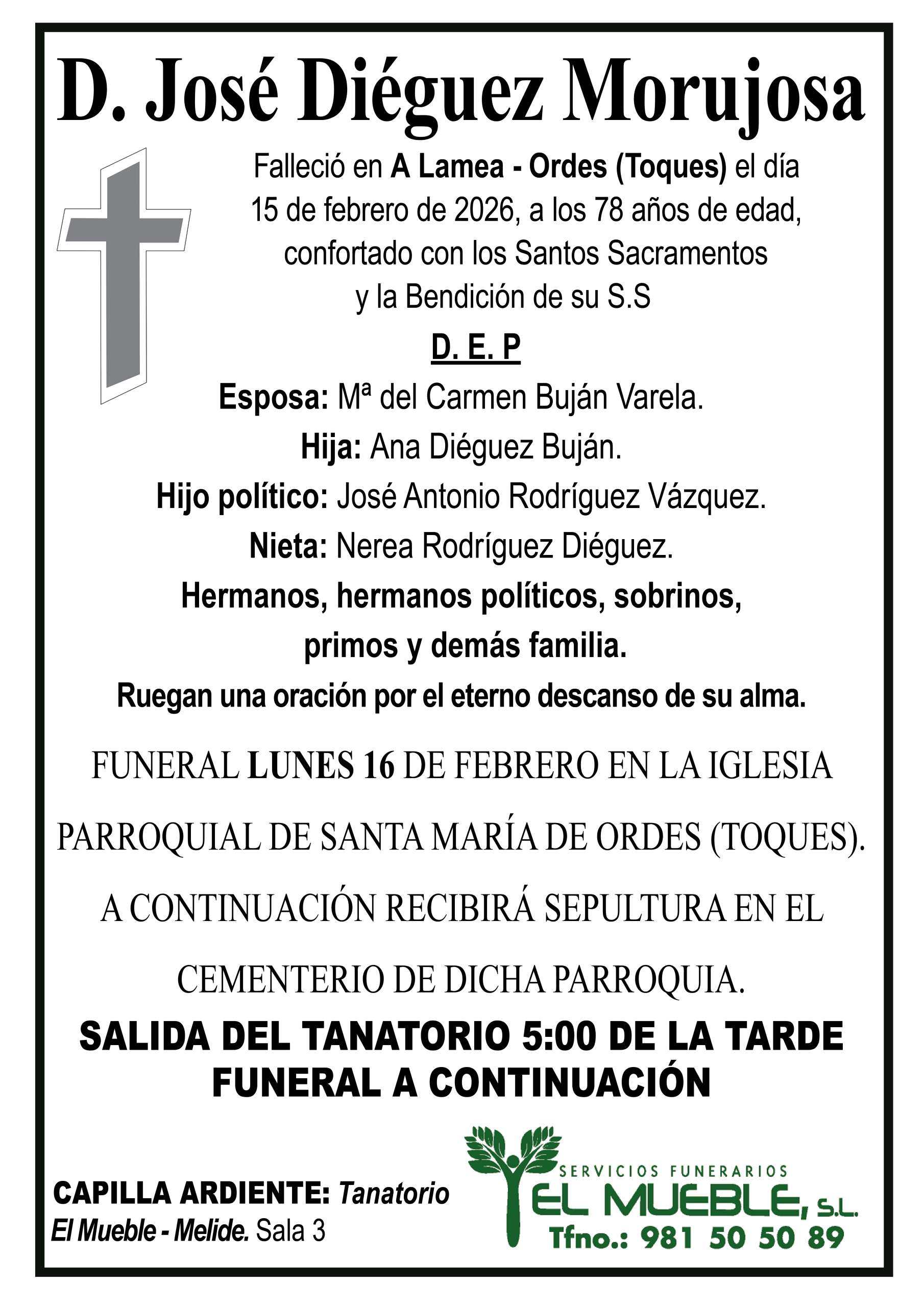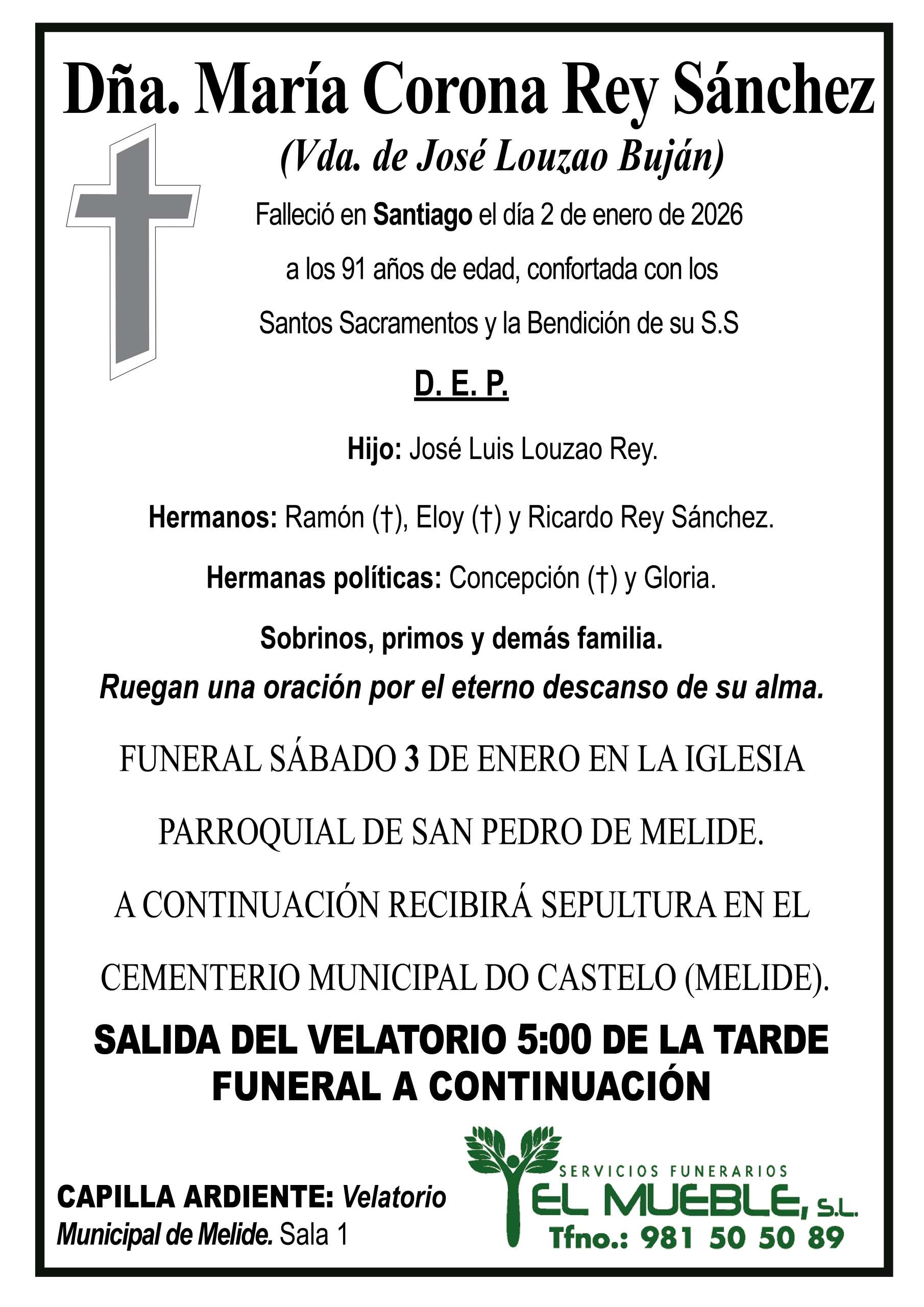 Desde Funeraria El Mueble ofrecemos a todos nuestros clientes un servicio de funeraria y de tanatorio las 24 horas los 365 días del año. El equipo de nuestra funeraria en Melide queremos mostrar a todos nuestros clientes que les acompañaremos de una manera cercana en estos momentos tan complicados para ellos.