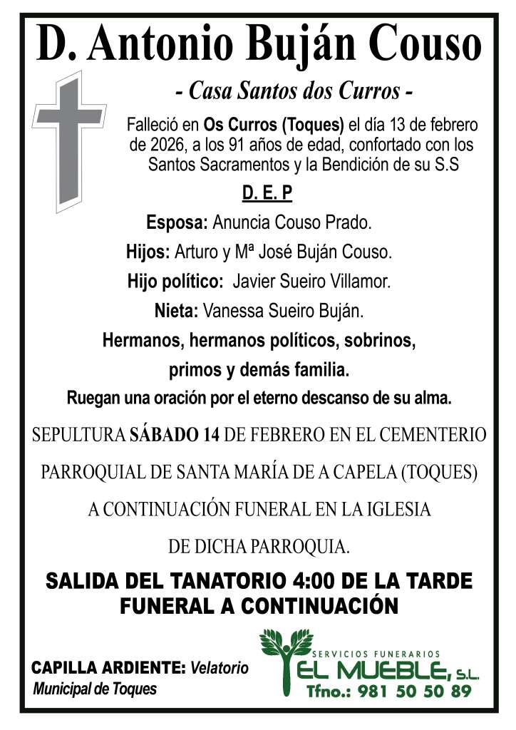 Pésame para la familia de D. Antonio Buján Couso..