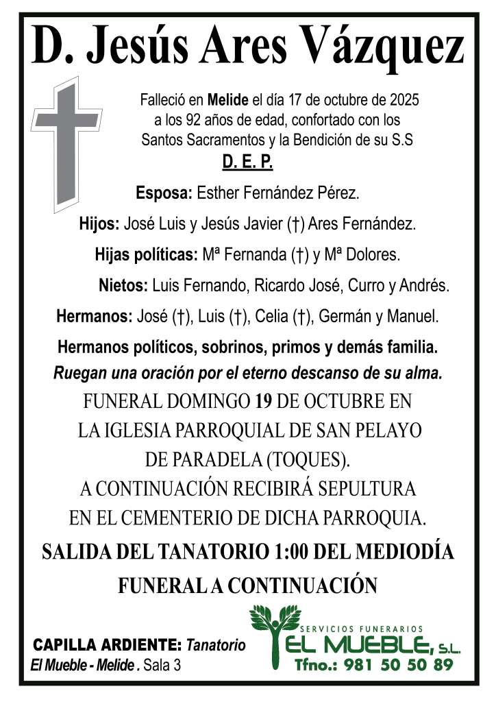 Pésame para la familia de D. Jesús Ares Vázquez.
