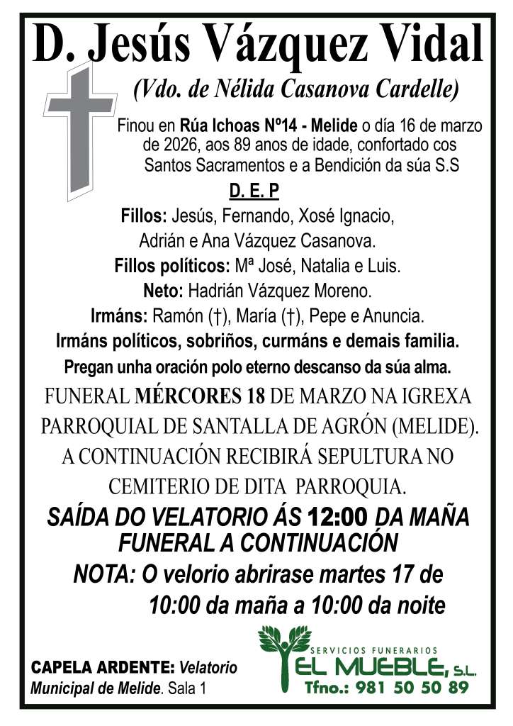 Pésame para la familia de D. Jesús Vázquez Vidal..