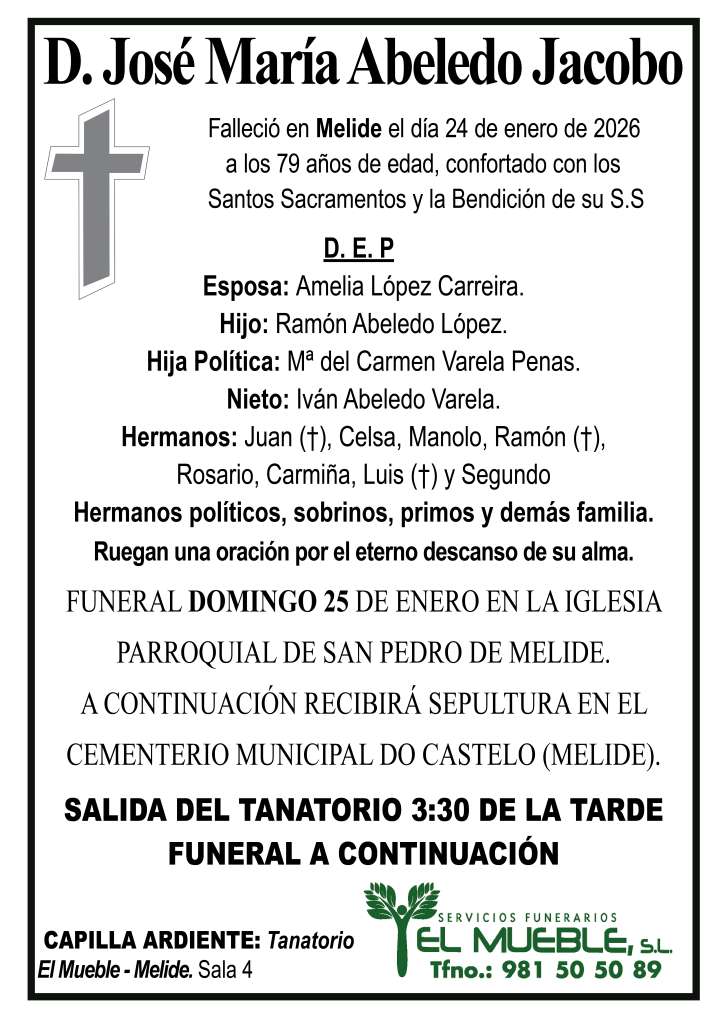 Pésame para la familia de D. José María Abeledo Jacobo..