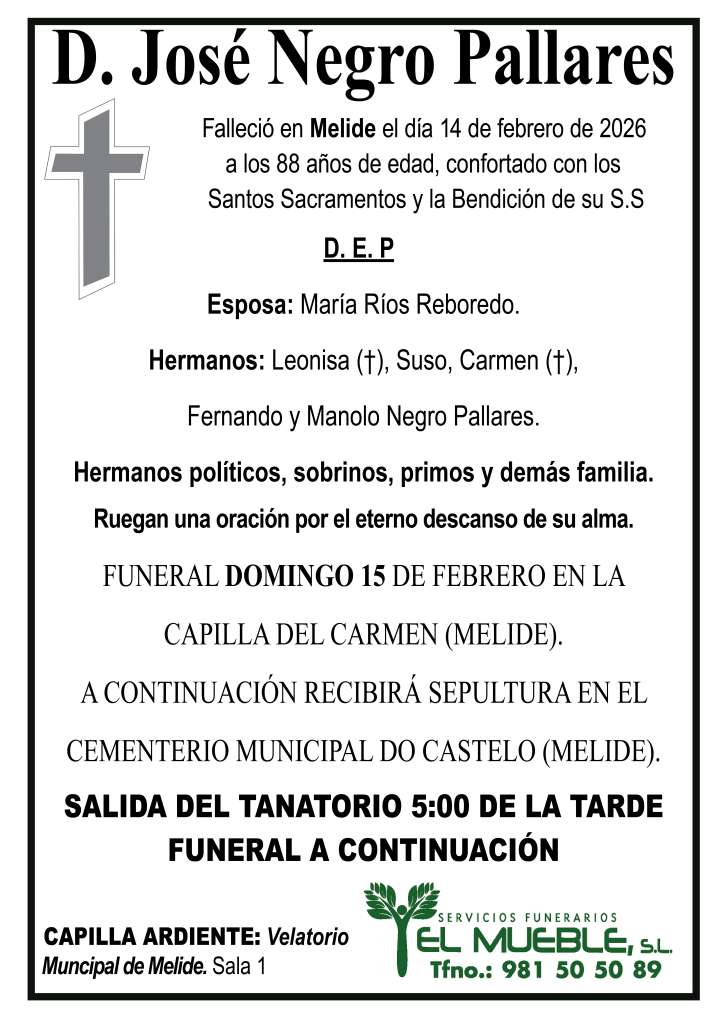 Pésame para la familia de D. José Negro Pallares..