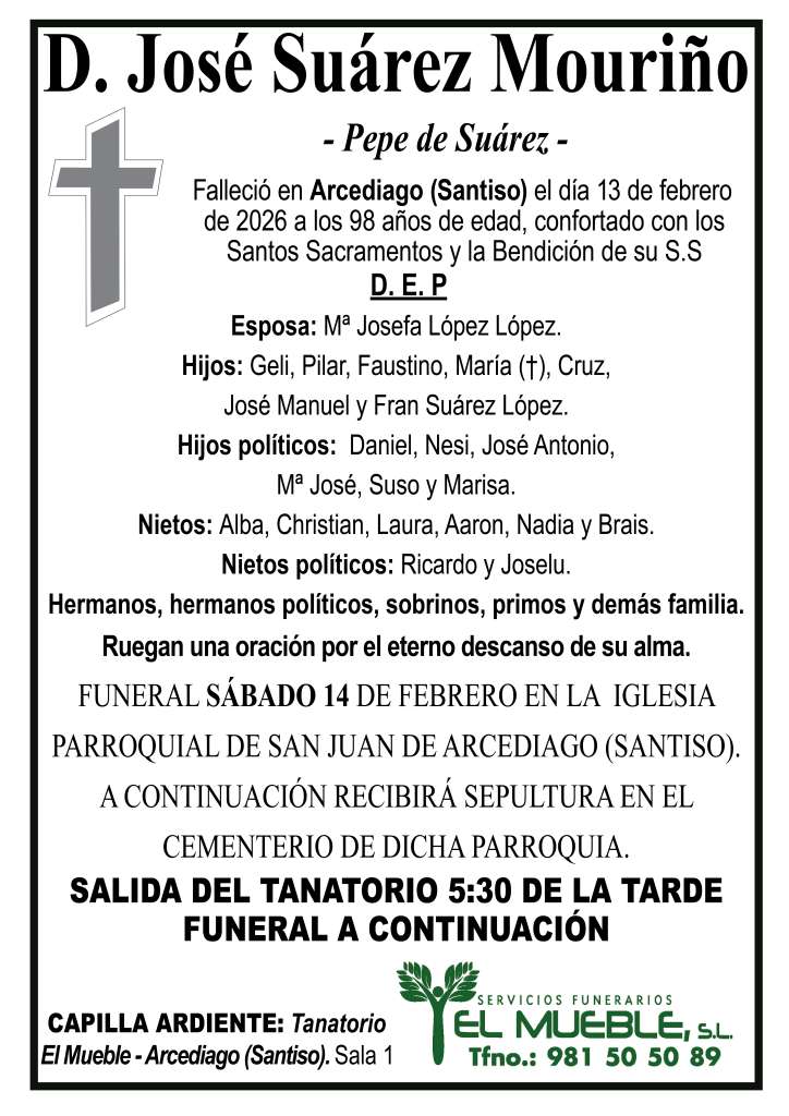 Pésame para la familia de D. José Suárez Mouriño..