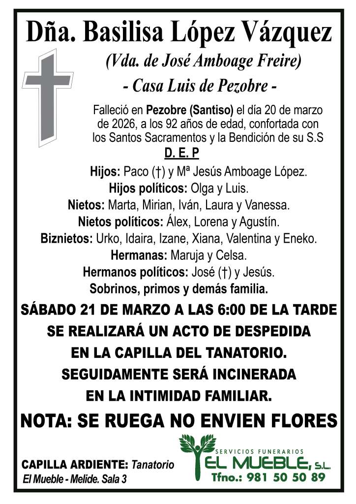 Pésame para la familia de Dña. Basilisa López Vázquez..