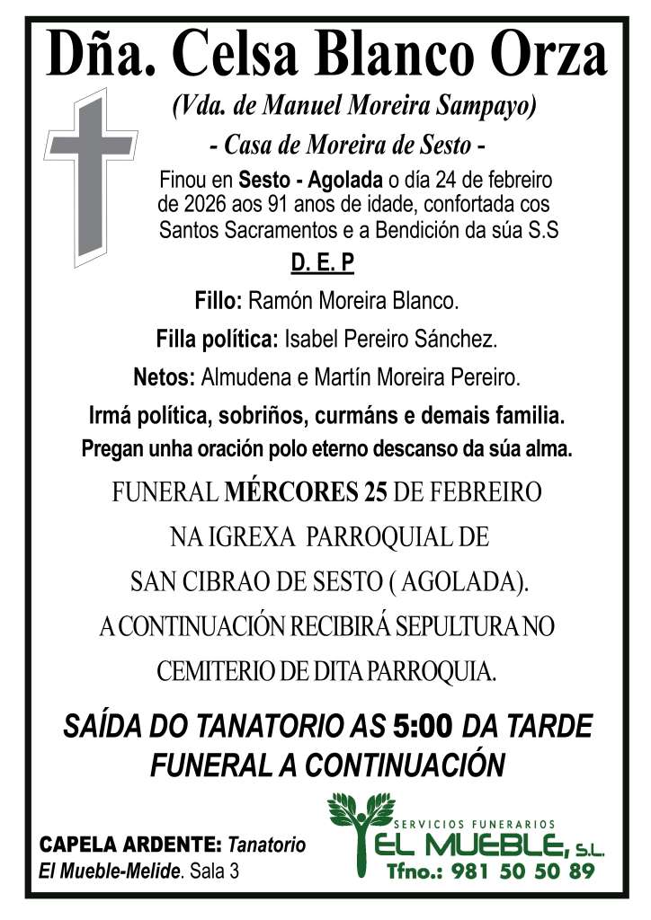 Pésame para la familia de Dña. Celsa Blanco Orza..