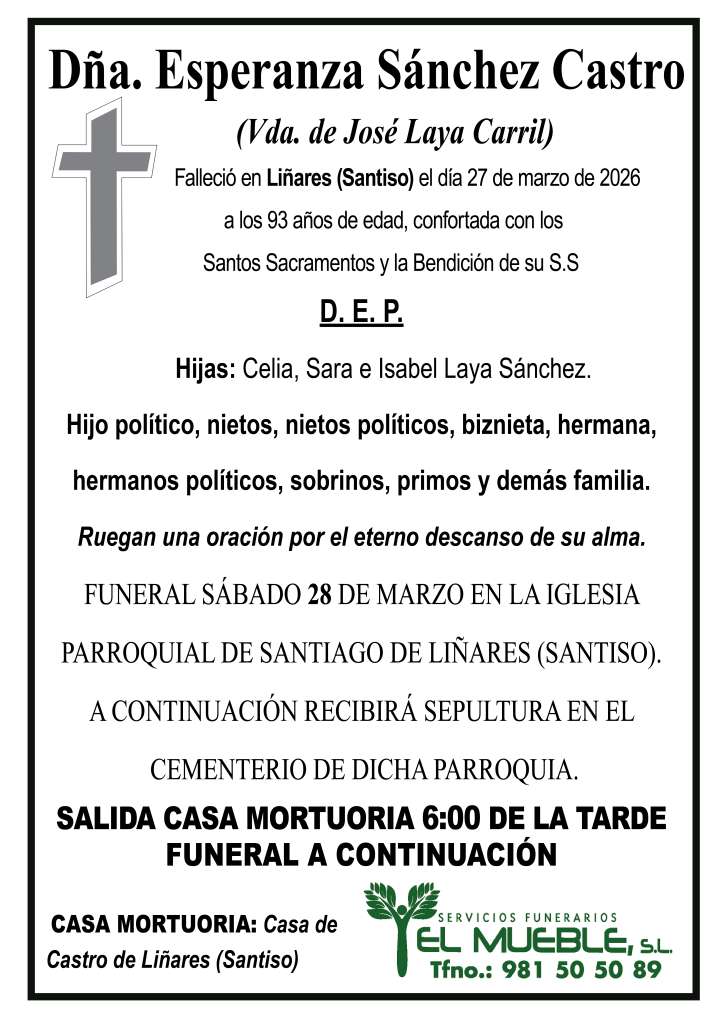 Pésame para la familia de Dña. Esperanza Sánchez Castro..