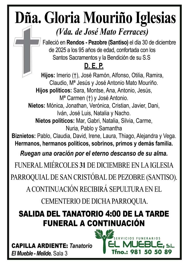 Pésame para la familia de Dña. Gloria Mouriño Iglesias..